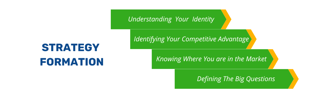 Our Real-Time Strategic Planning methodology starts by identifying “Big Questions,” top organizational issues, during a strategy development session with key organizational leaders. This process includes: